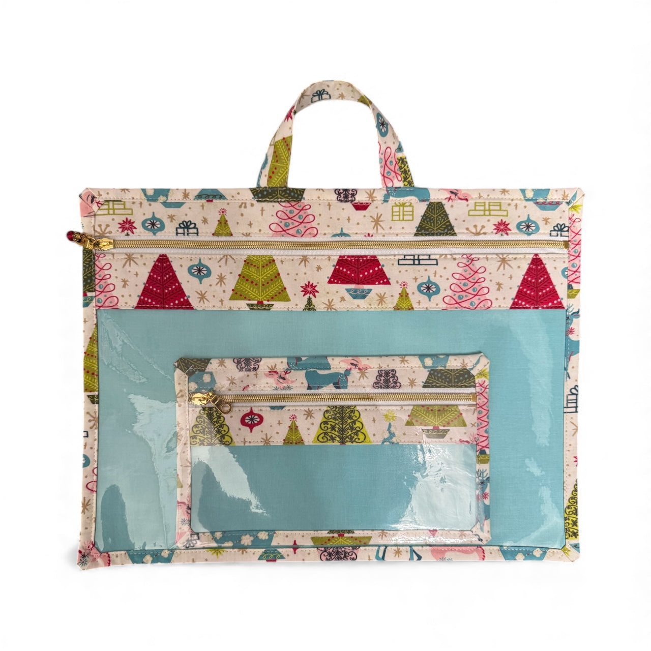 Large Project Bag w/Handle & Matching Fibers Bag - Retro Deer Christmas